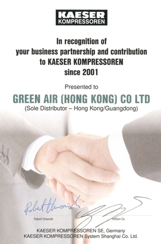 明利(香港)有限公司{Green Air (Hong Kong) Co. LTD.}是德國凱撒授權在中國廣東省和港澳地區的總代理。廣州市明愷工業設備有限公司 是 明利(香港)有限公司 在中國大陸注冊投資的一家外資公司,主要負責凱撒空壓機及其后處理系統在中國廣東省的銷售、安裝、維修服務。明利(香港)有限公司于1993年開始跟KAESER合作,我們衷心希望能通過我們的努力和您的配合,把空壓機行業的先進技術介紹給每一個客戶,從而更好地貫徹KAESER的宗旨,樹立KAESER空壓機的良好形象。